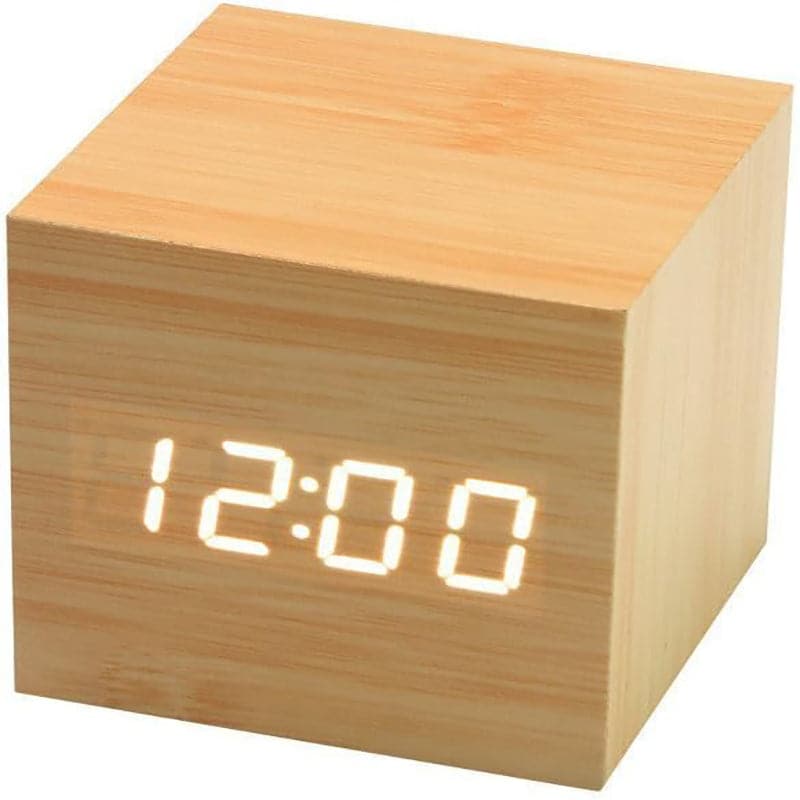 - 01 Reloj Despertador de Madera con Forma de Cubo