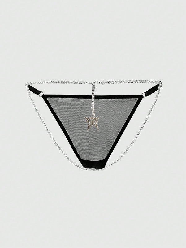 ROMWE Goth Bragas Tipo Tanga Con Detalle De Cadena Y Mariposa Estilo Gotico Para Mujer