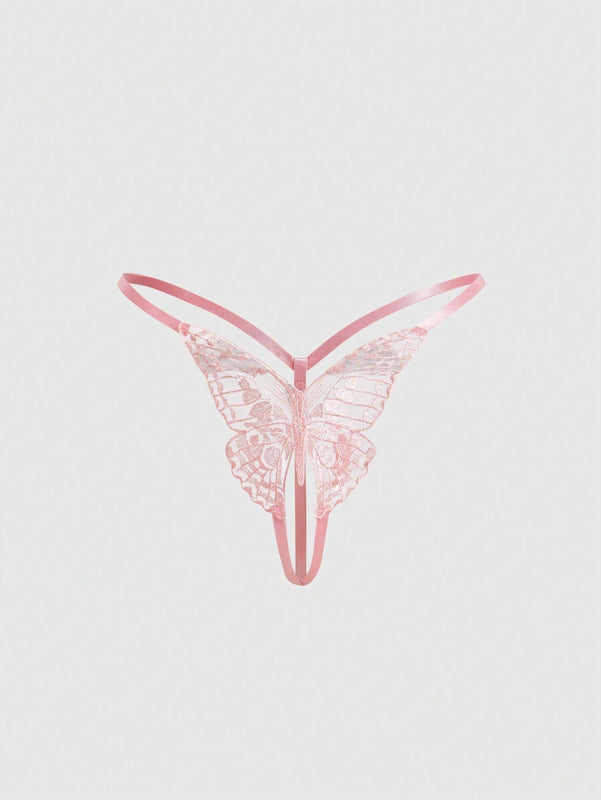 ROMWE Goth Calzoncillos De Tanga Sexy Sin Entrepierna De Encaje Solubles Al Agua Con Mariposas 3d