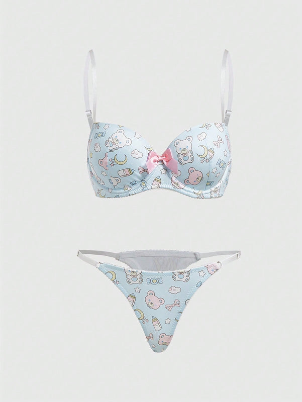 ROMWE Kawaii Conjunto De Lenceria Para Mujeres Con Diseno Encantador De Oso De Peluche Con Aros