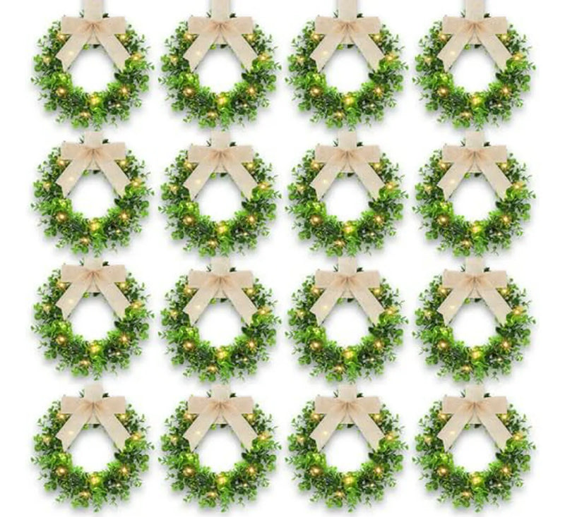 Set De 32 Wreaths Navideños Con Luces Led Y Listón - Zeyune