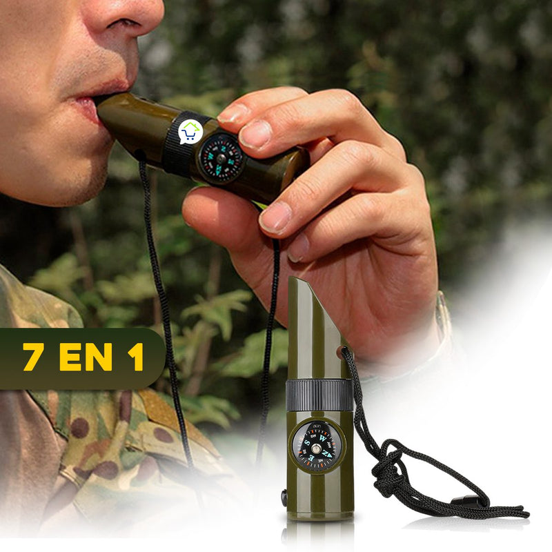 Silbato Supervivencia 7 en 1 herramientas Pito Linterna Rescate 22MK1