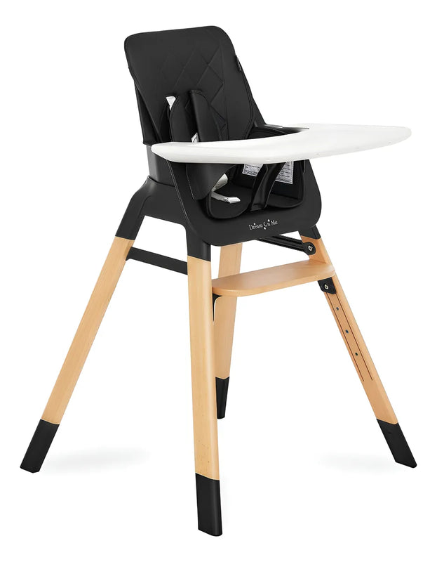 La silla alta Nibble viene con un arnés de seguridad de 5 puntos y una cubierta de cinturón de hombro, y cumple o supera los estándares más recientes de ASTM F 833 18.