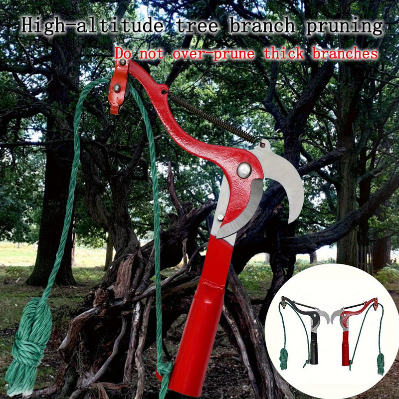 Tijeras de poda de rama de alta montaña - Eficientes tijeras telescópicas de rama alta para la recolección de árboles frutales, poda de árboles y uso agrícola - Mango ergonómico negro con anclaje de cuerda verde, hoja de acero aleado duradera, no necesit