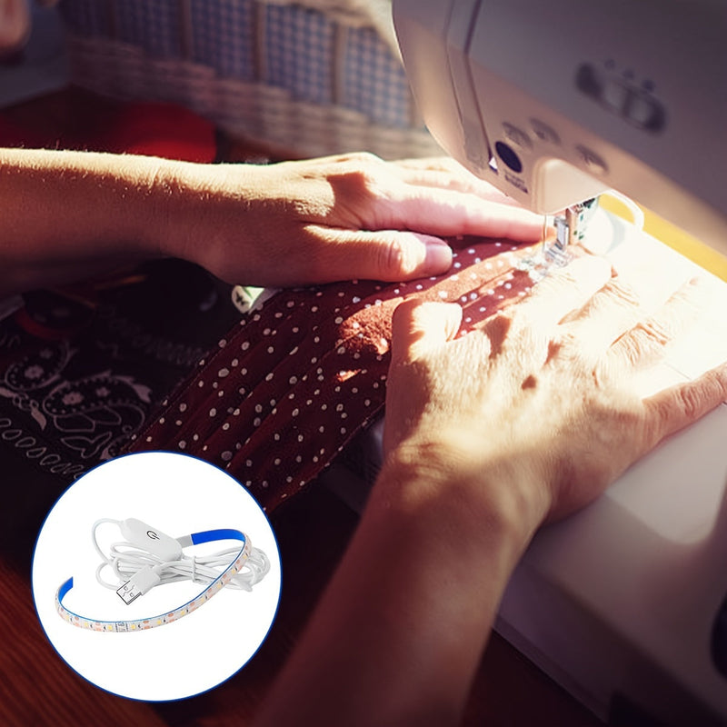 Tira de luces LED regulable para máquina de coser, 29.87 cm, luz flexible con USB y regulador táctil, para iluminación bajo gabinete, manualidades y celebraciones, montaje adhesivo, acabado metálico, pantalla de resina - 1 unidad