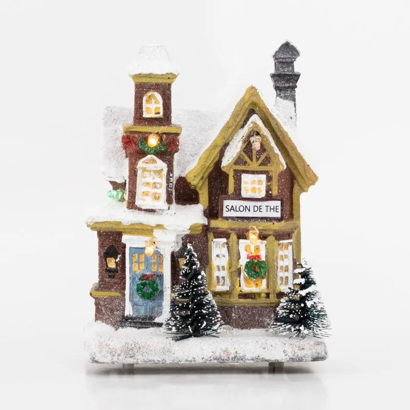 Villa Navideña De 12 X 9 Cm Con Arboles Y Luz Led